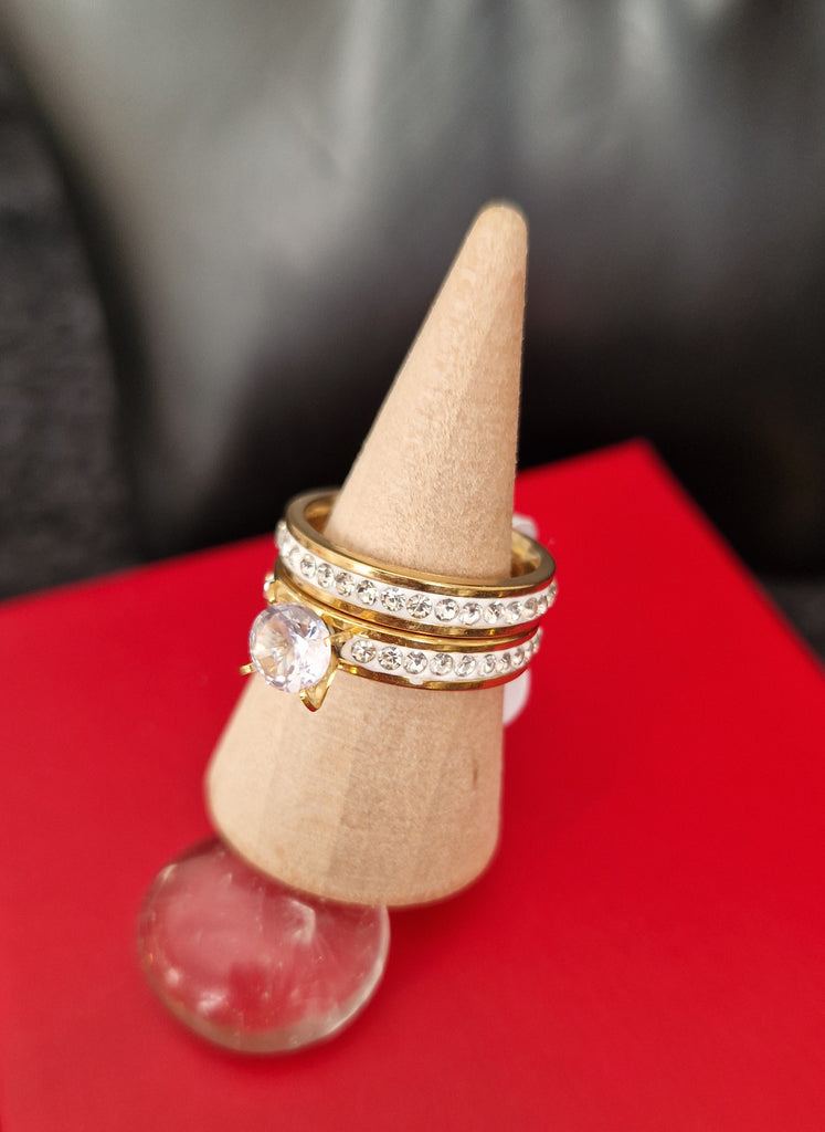 Bague 2 pièces en acier inoxydable strass et solitaire