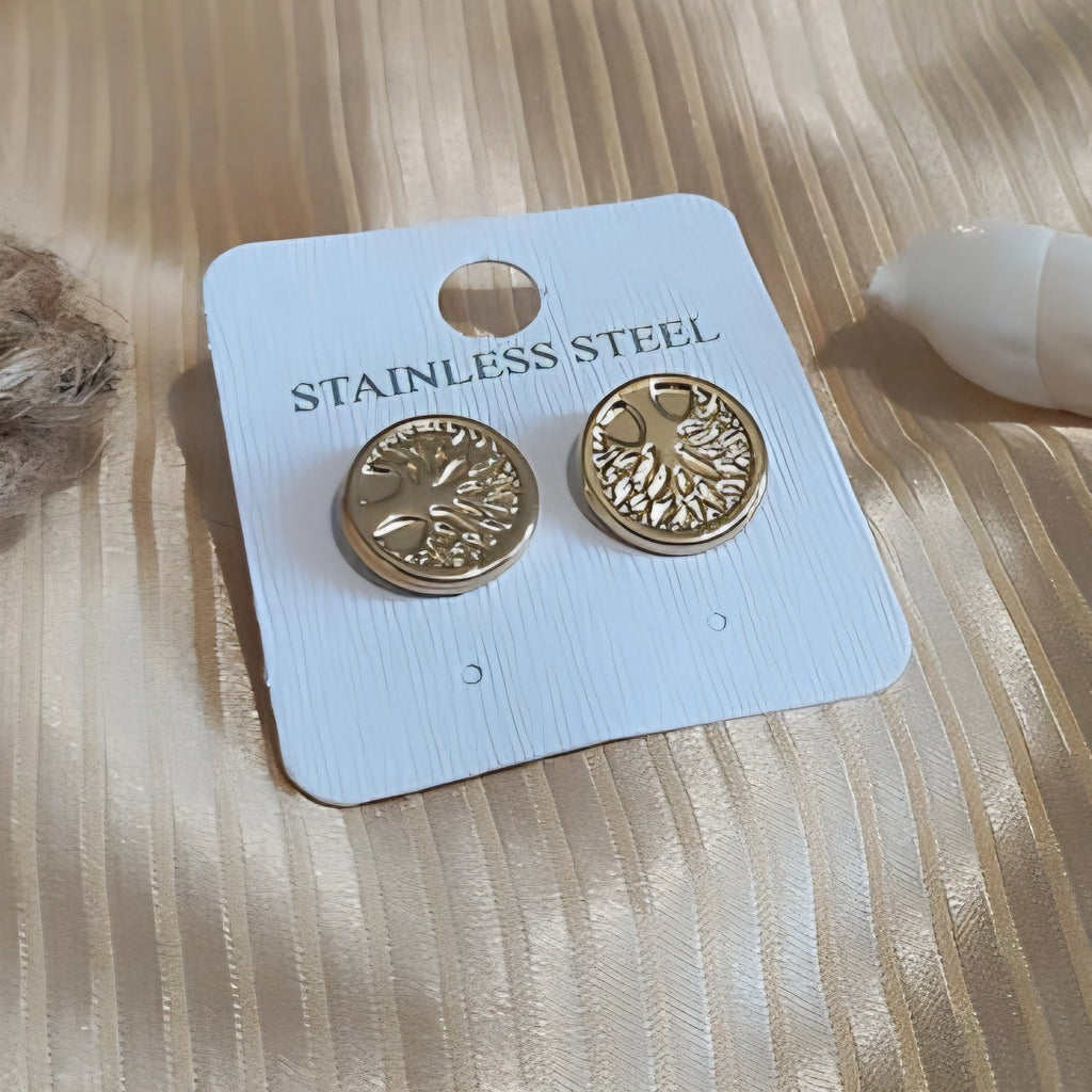 Boucles d'oreilles en acier inoxydable avec arbre de vie doré