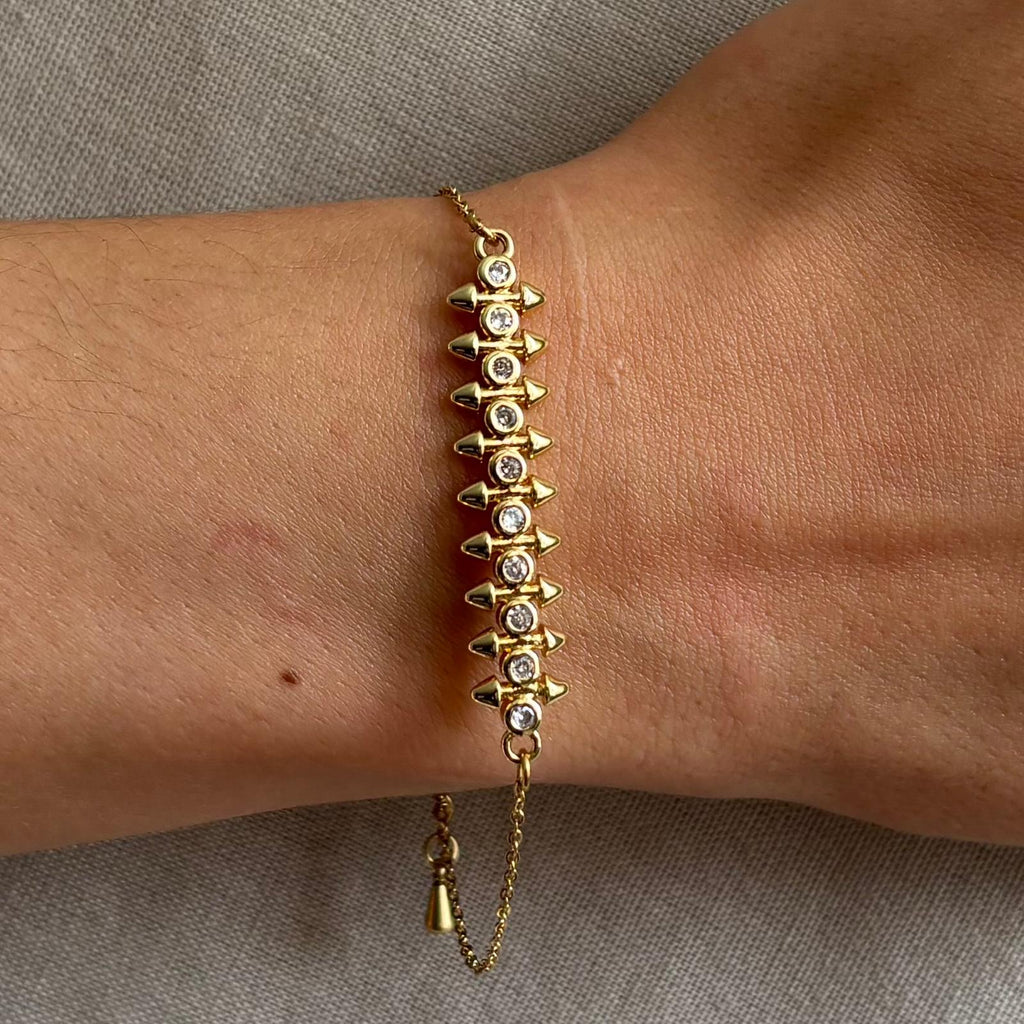 Bracelet en acier inoxydable ligne striée et strass