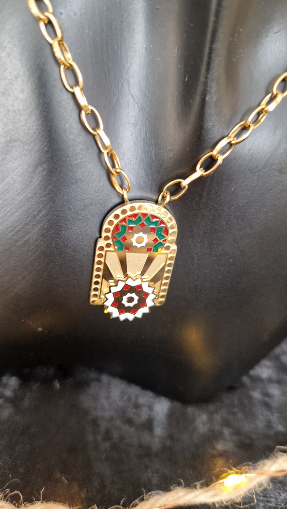 Collier beldi en acier inoxydable porte orientale Bab El Mansour motif Zellige