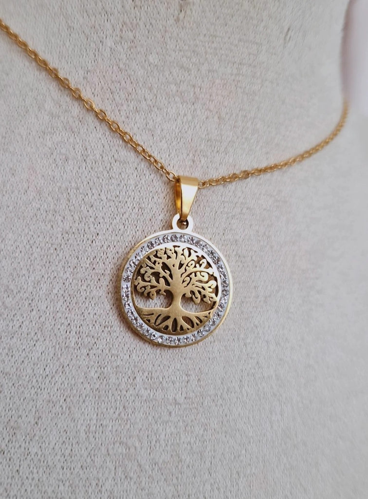 Collier en acier inoxydable arbre de vie et strass
