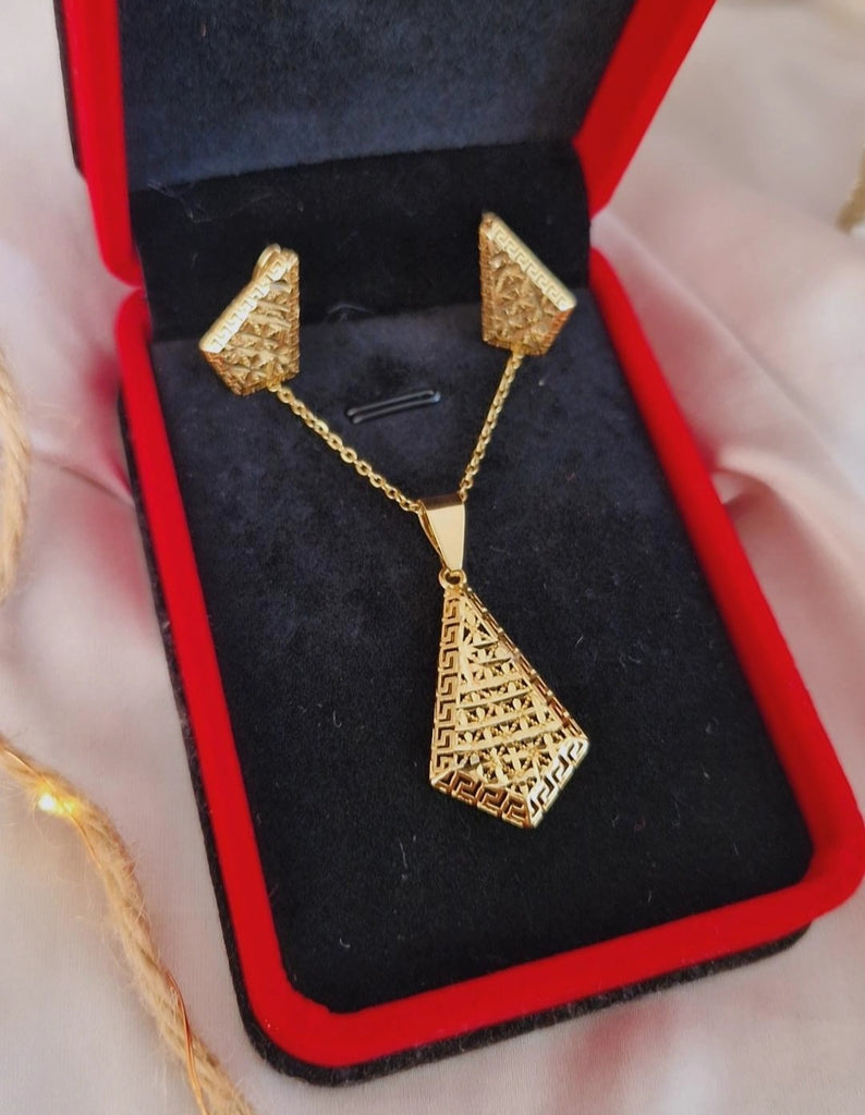 Ensemble Collier + boucles d'oreilles assorties en acier inoxydable beldi ajourés