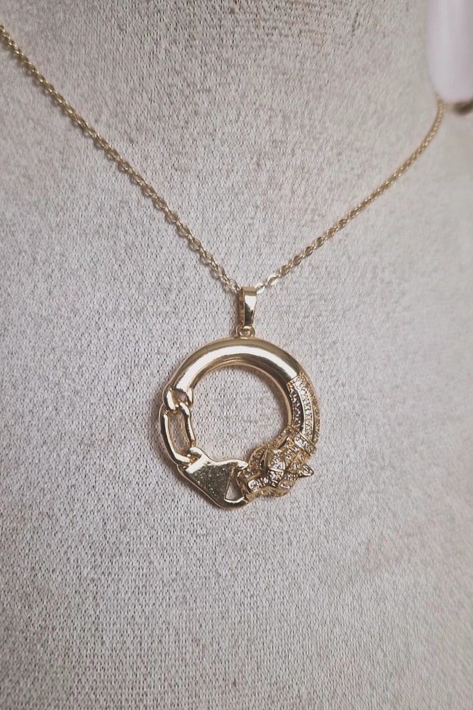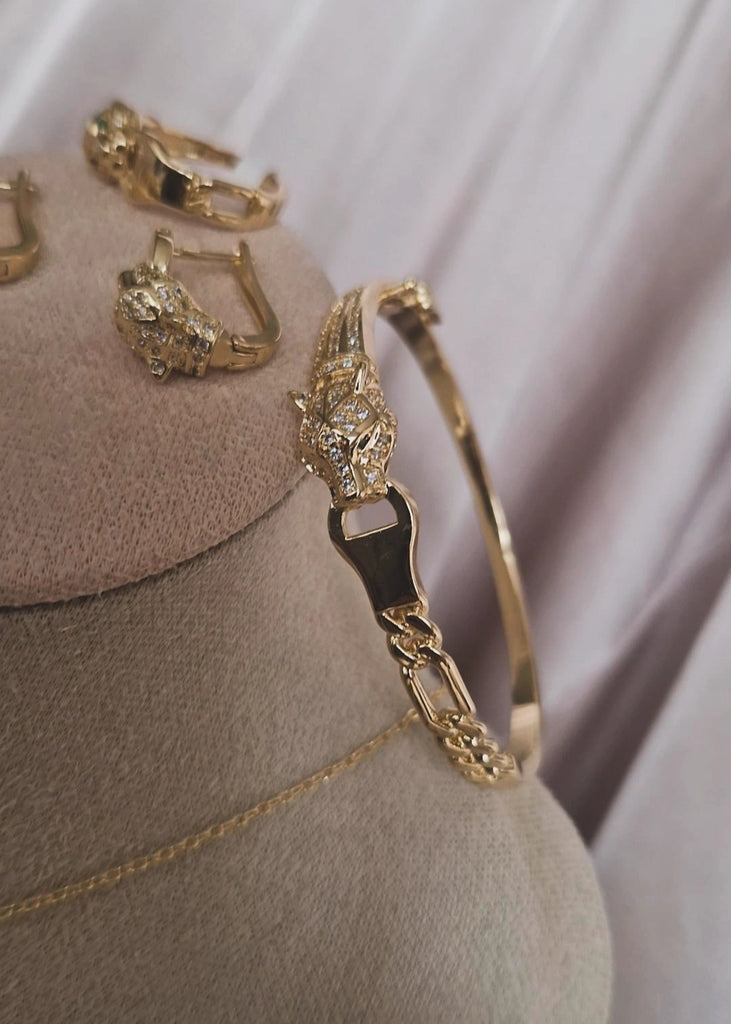 Ensemble Jaguar Collier + bracelet jonc + boucles d'oreilles + bague assortis