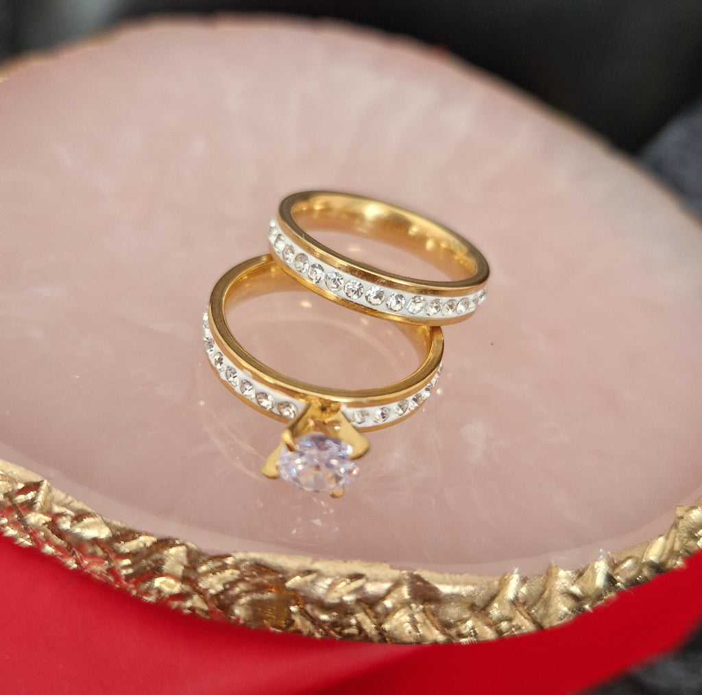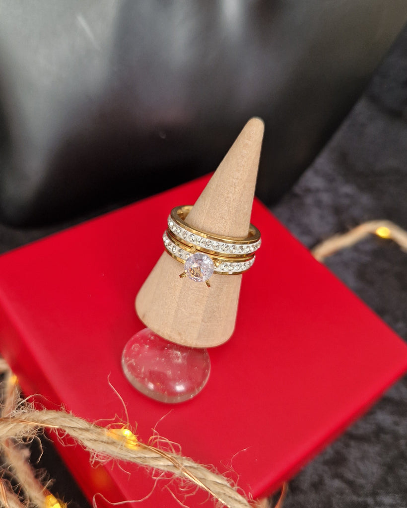 Bague 2 pièces en acier inoxydable strass et solitaire