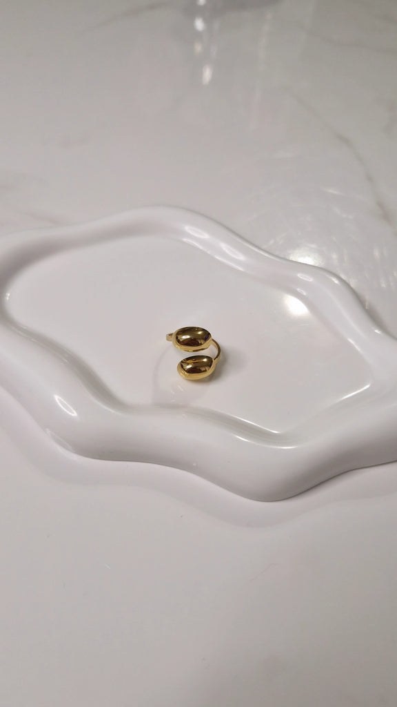 Bague ajustable en acier inoxydable double gouttes dorées