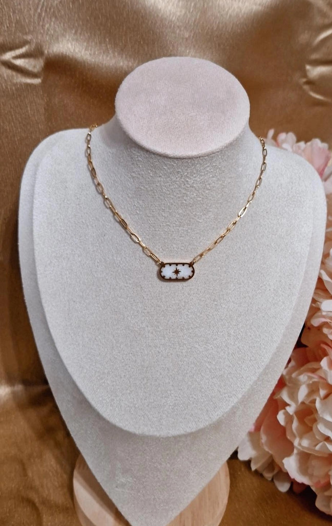 Collier en acier inoxydable pendentif blanc nacré rectangle